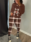 LW Casual Twilled Satin Round Neck Patchwork Mixed Print Three Quarter Two-piece Pants Set
